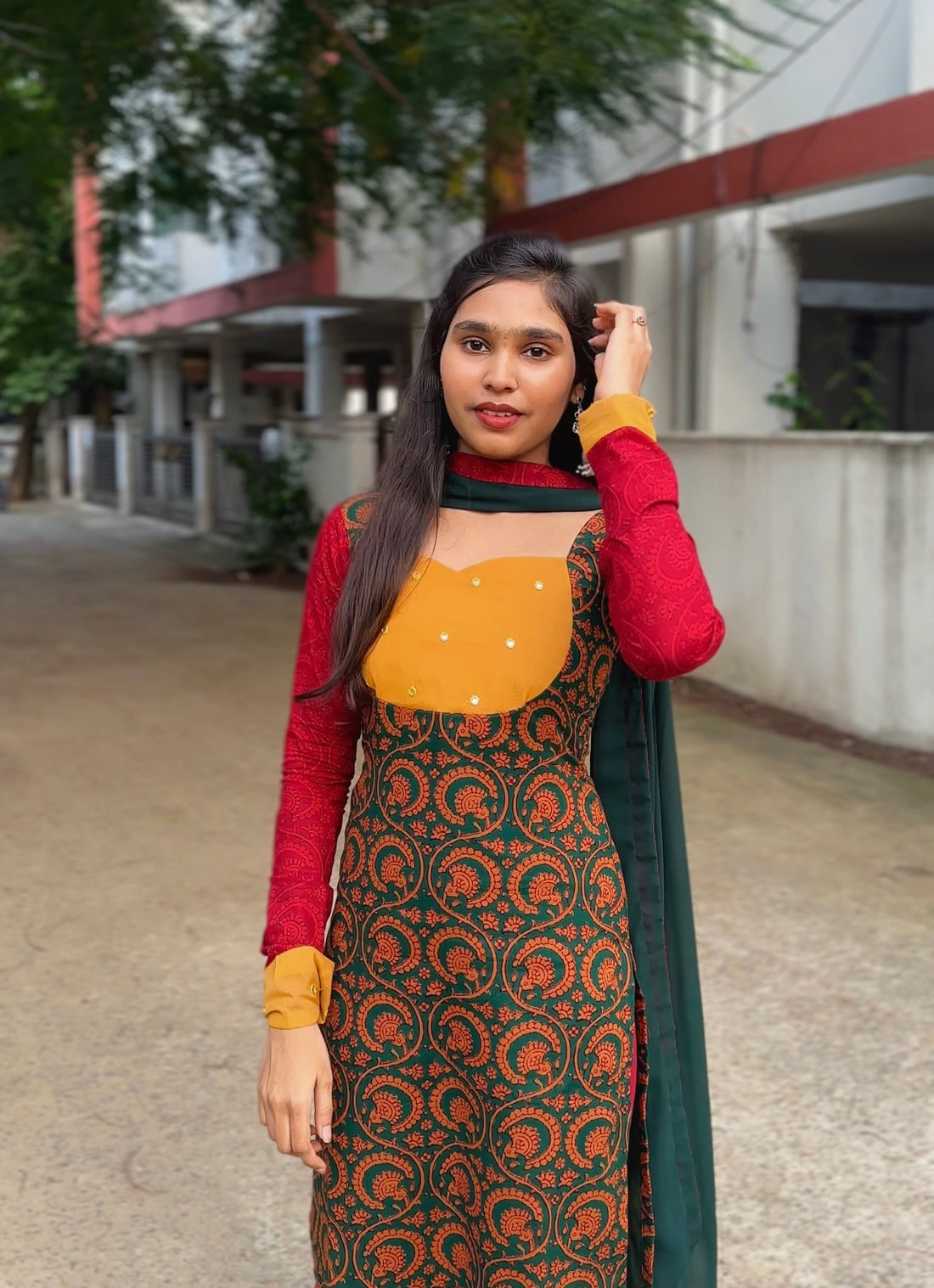 Colourful cotton kurti with georgette duppata✨ Inclusive of Top and duppata ✨Bottom not included✨Fully stitched with...