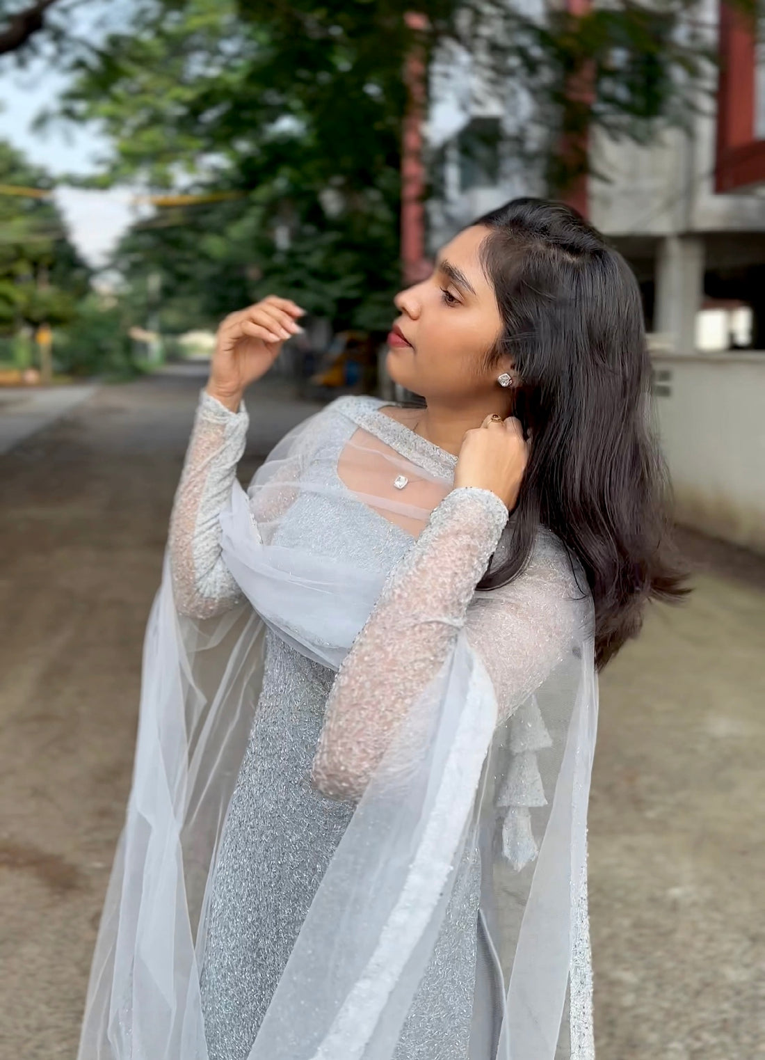 Christmas soft net bead work kurti set 🤍✨Top and duppata set✨ Bottom not included✨Fully stitched...