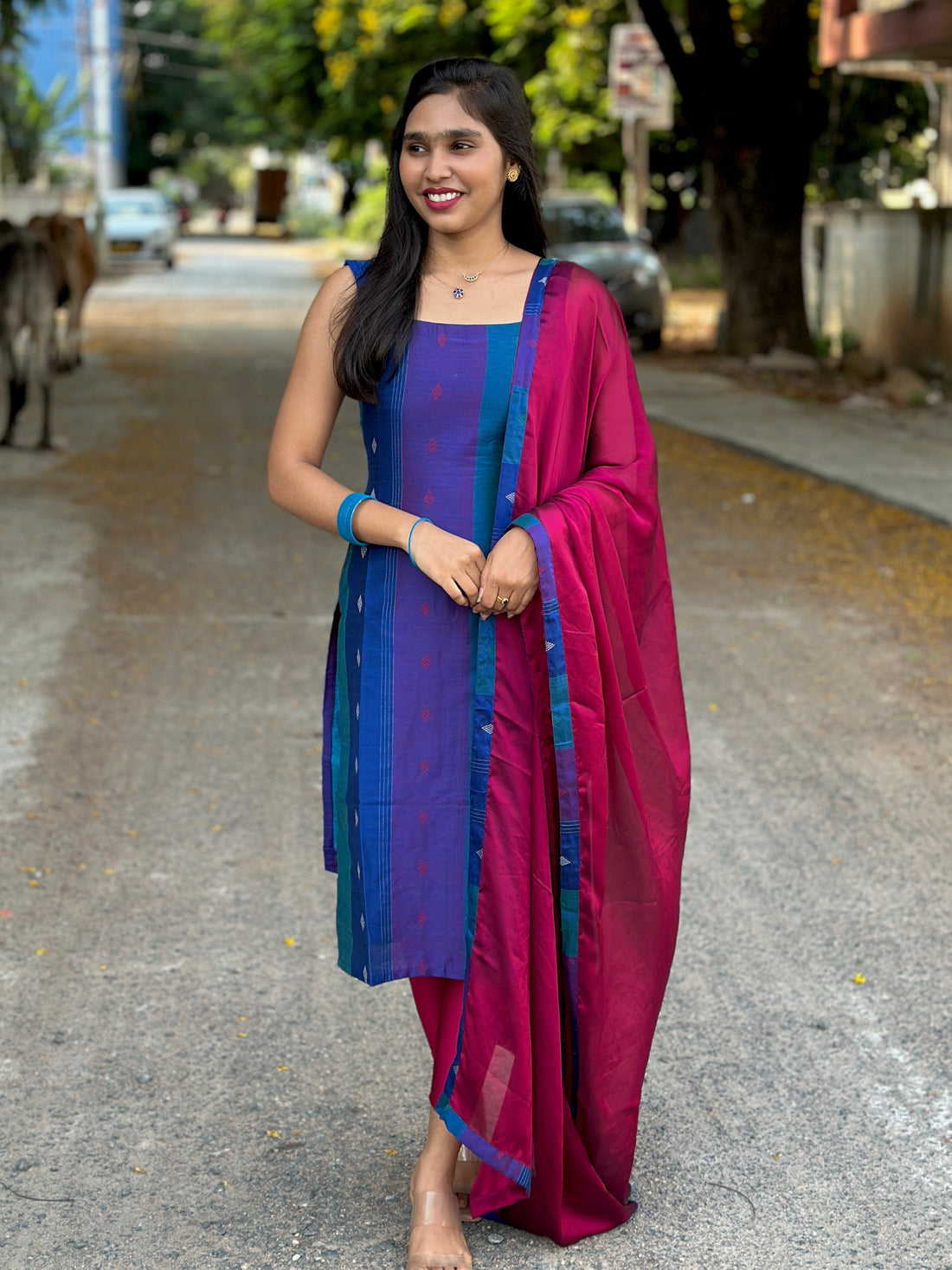 Festive special narayanpet cotton anarkali set✨Fully stitched with lining ✨Back zip attached ✨Bottom not included ✨Knot attached in...