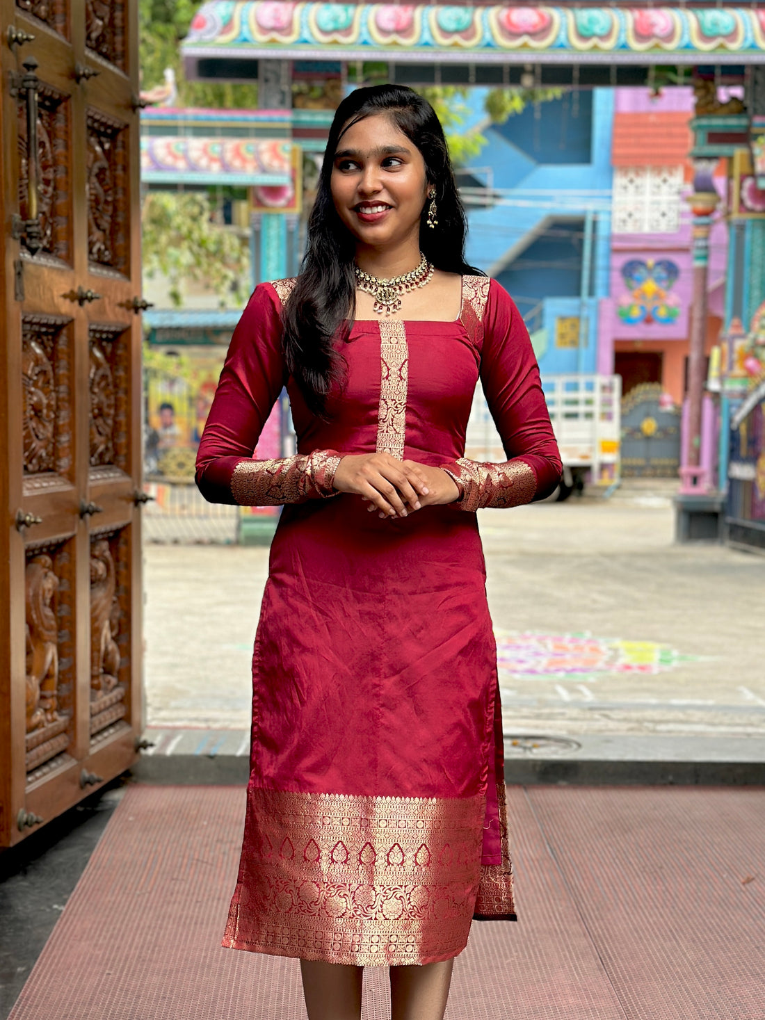 ROYAL FULL SLEEVE BANARASI KURTI✨ Bottom not included✨Fully stitched with lining ✨Back zip attached ✨Knot attached in...