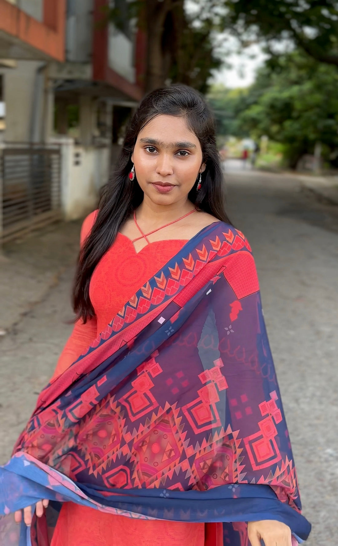 Chiffon kurti with duppata set✨Top and duppata set✨ Bottom not included✨Fully stitched with lining ✨Back zip...