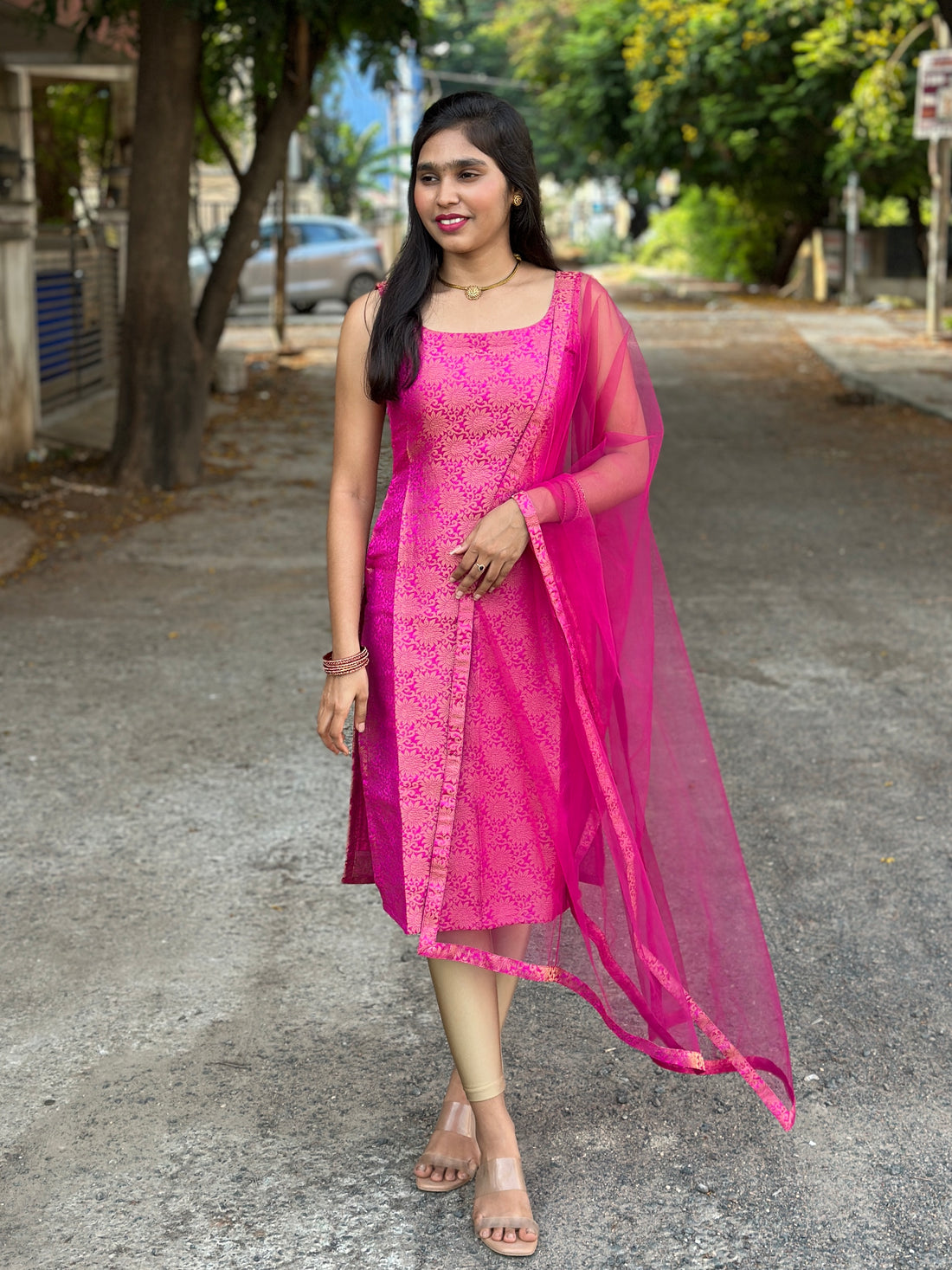 Banarasi kurti with soft net duppata✨Top and duppata set✨ Bottom not included✨Fully stitched with lining ✨Back...