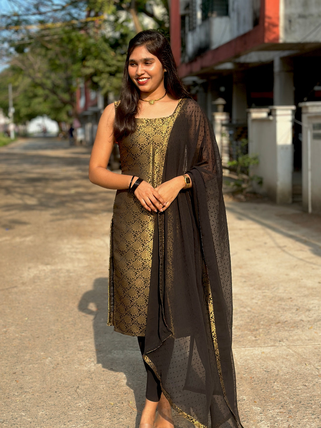 Banarasi kurti set✨ Inclusive of Top and duppata ✨Bottom not included✨Fully stitched with lining ✨Back zip attached ✨Knot...