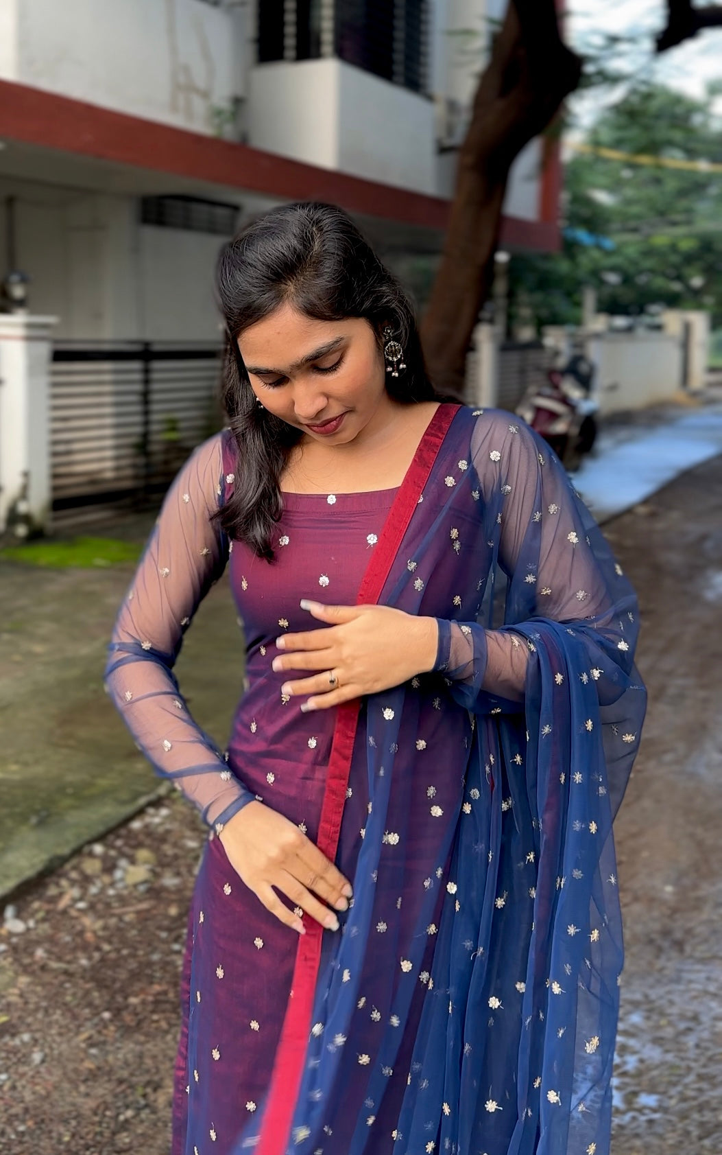 Maroon blue combo soft net kurti set✨Top and duppata set✨ Bottom not included✨Fully stitched with...