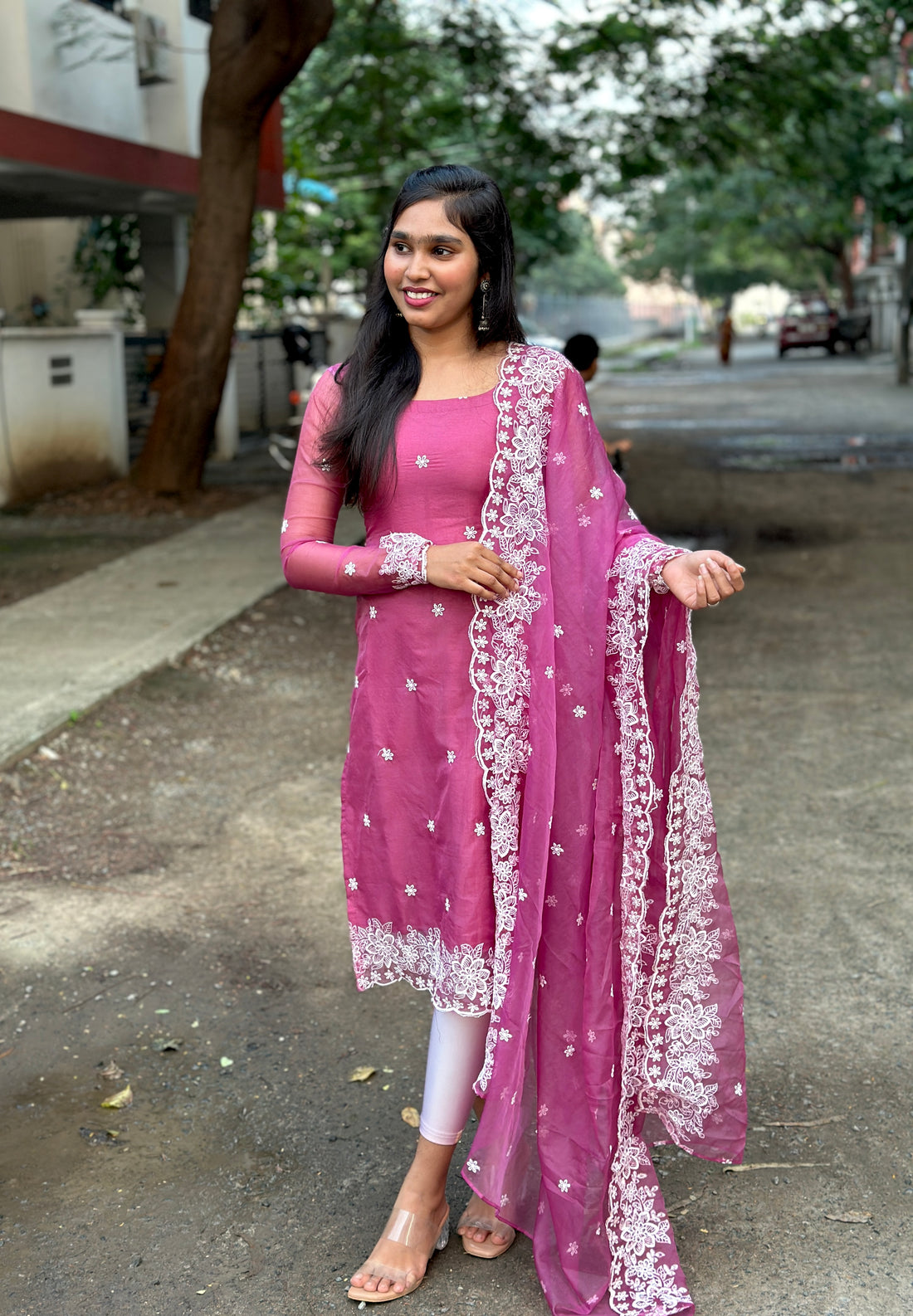 Organza floral embroidery kurti set✨ Inclusive of Top and duppata ✨Bottom not included✨Fully stitched with lining ✨Back...