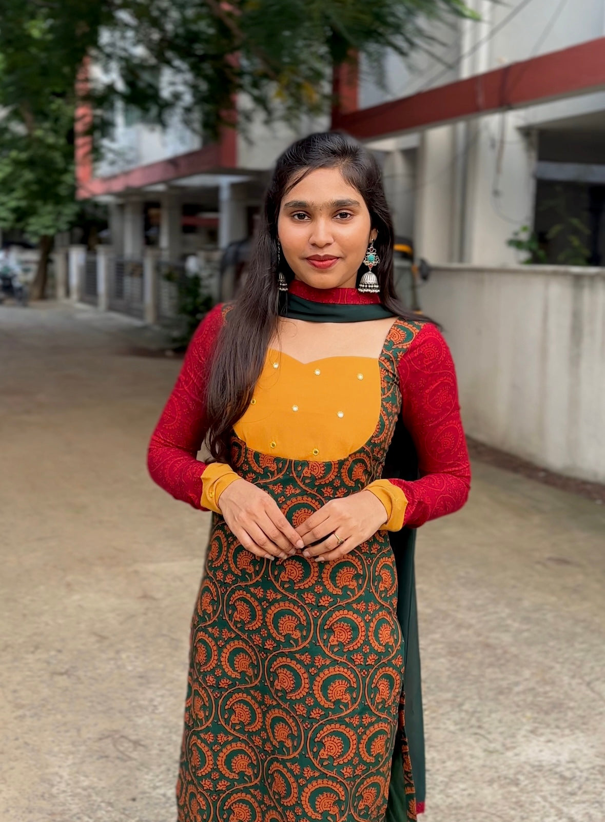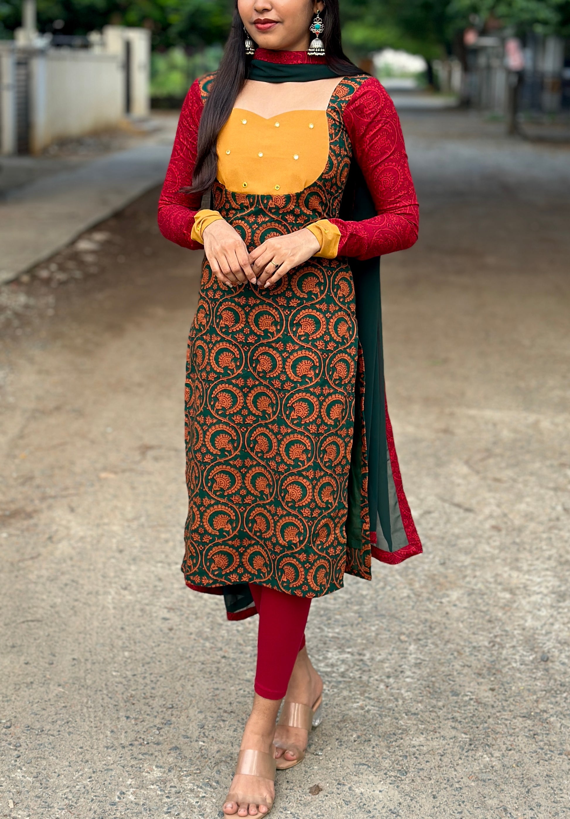 Colourful cotton kurti with georgette duppata