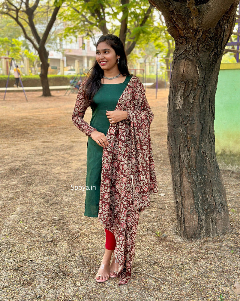 ✨Fabric: Premium Raw silk with Kalamkari cotton duppata (Similar pattern kalamkari material will be used)