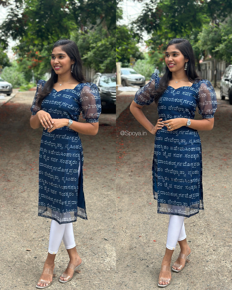 Organza elbow puff sleeves kurti