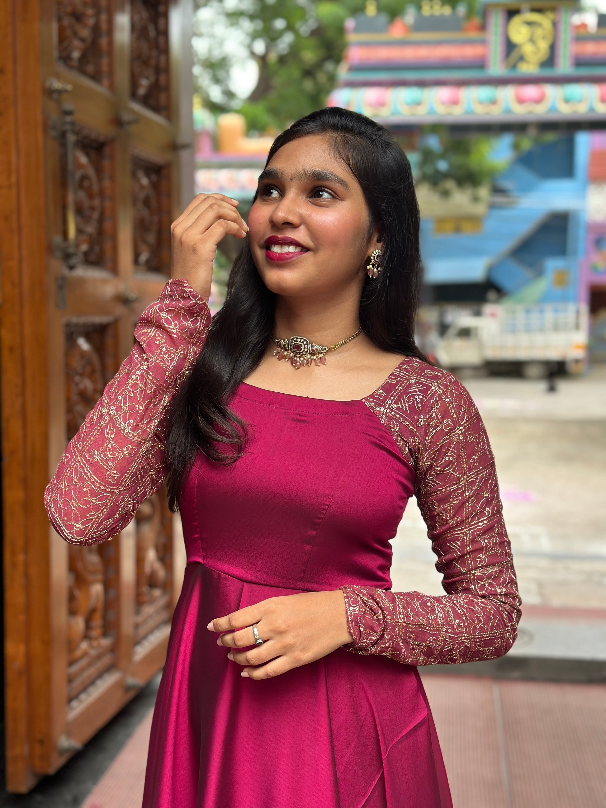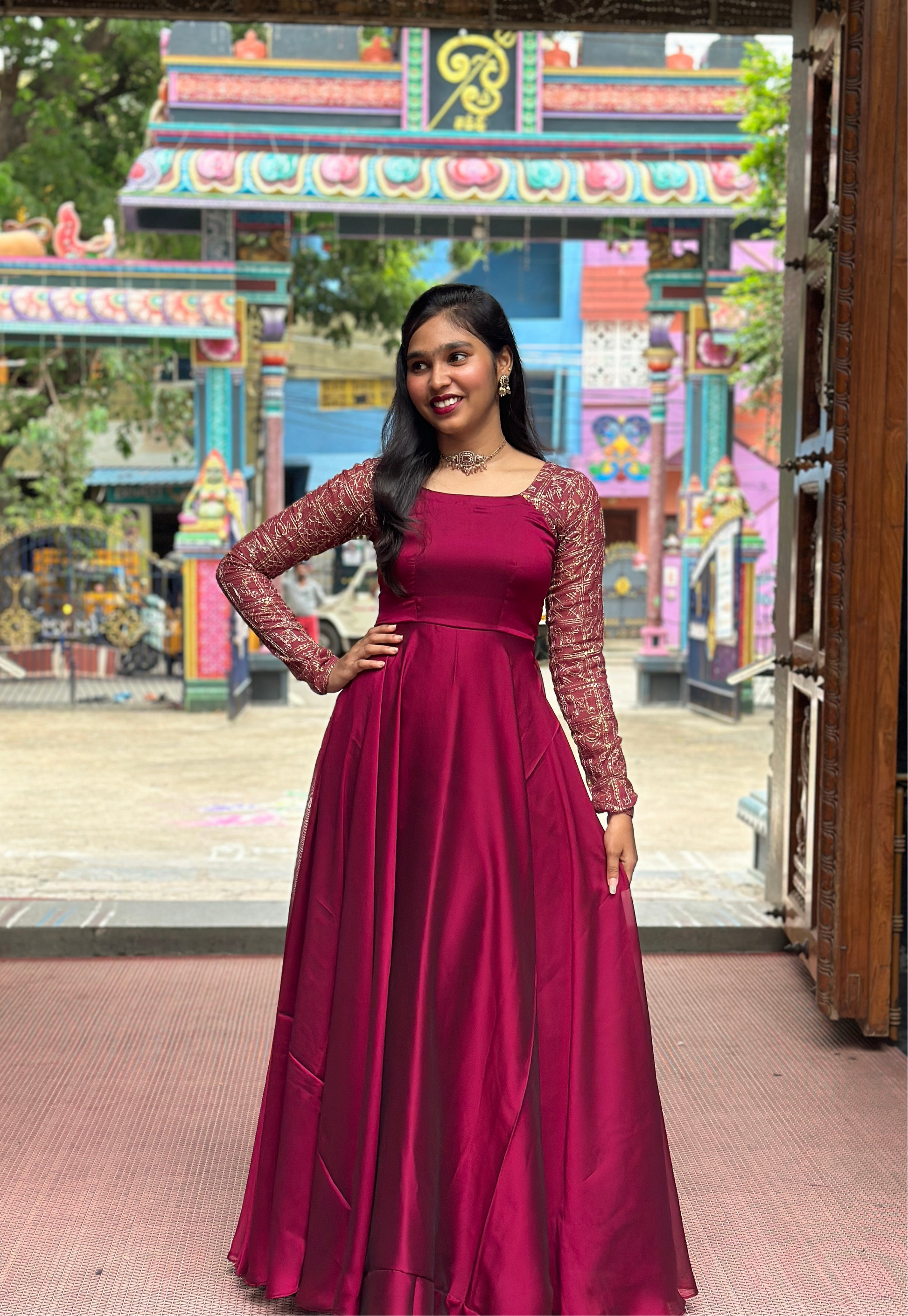 ✨Fabric: Shiny georgette and sequence embroidery sleeves (similar pattern sleeve material will be used)