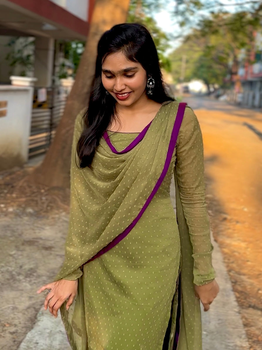Leaf green butta kurti set